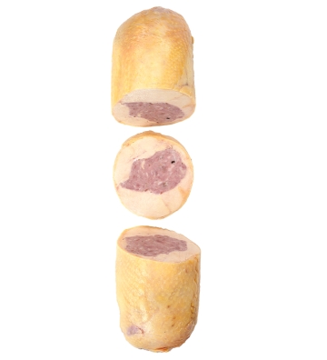 • INGREDIENTES: gallina deshuesada y rellena de solomillo y jamón. Adobada con trufa tuber melanosporum de Graus.