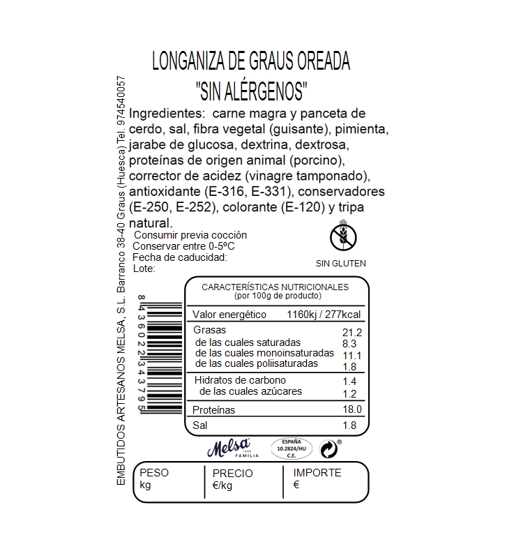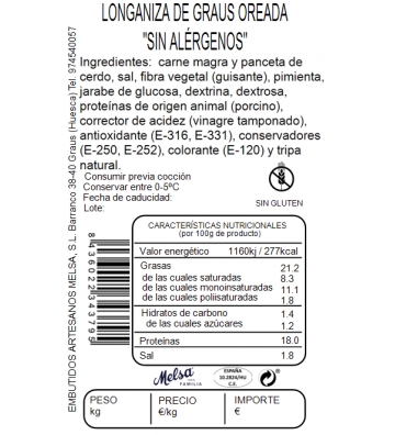 • PRESENTACIÓN: piezas de calibre 28/30, elaboradas con tripa natural.